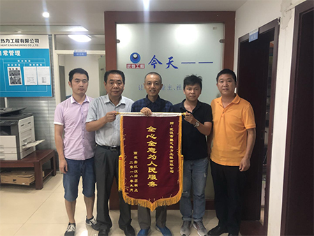 2018年9月25日中午,雨花斋店长皱店长特意将一幅印有“全心全意为人民服务”的锦旗送到了汉口分公司办公室,以感谢分公司在燃气工程安装过程对于客户竭心尽力、全心全意服务的工作态度。
