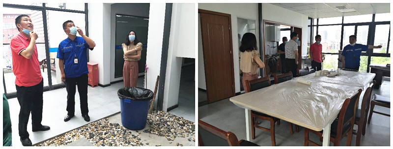 5月26日,誉城千里公司董事长沈斌、工程管理部副部长朱立新一行莅临燃气武昌公司视察,分公司经理李永淼、书记朱梦萍陪同并介绍了分公司复工复产情况、分公司疫情防控措施、员工测温记录等,以及项目部每天消杀情况和记录,一并介绍了党务和疫情防控宣传上墙等。