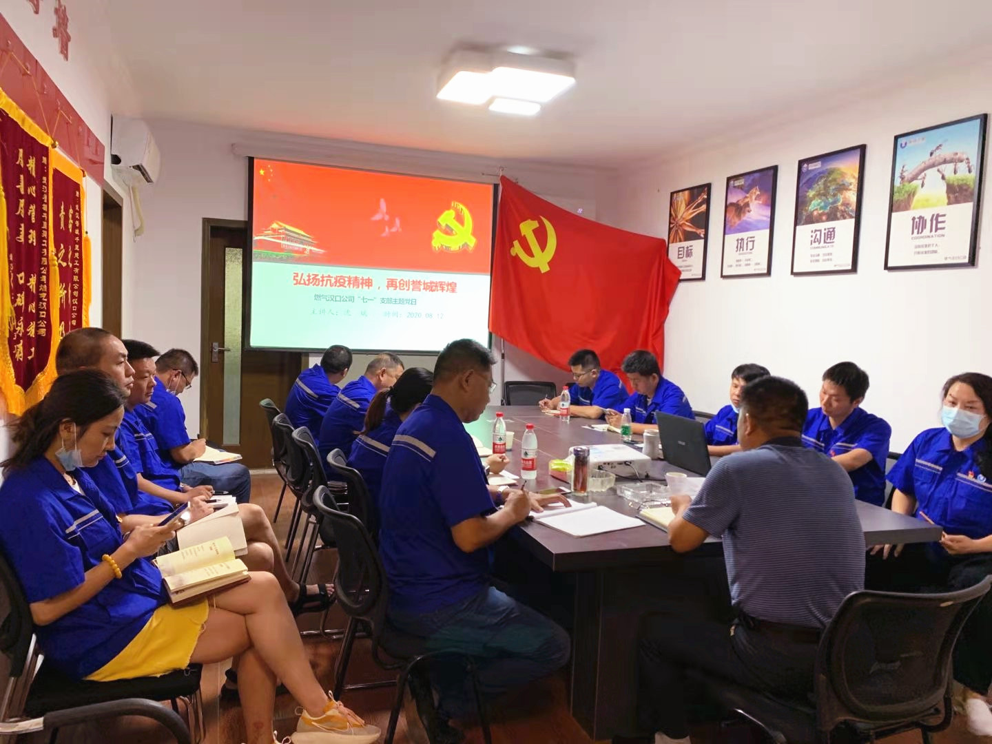 8月18日下午,誉城千里公司董事长沈斌在百忙之中抽出时间,来到燃气汉口公司,给基层支部的党员同志们上了一堂生动的党课。本次党课由燃气汉口公司经理叶勇主持召开,综合办主任王勤和燃气汉口公司党支部党员共计14人参加了党课学习。