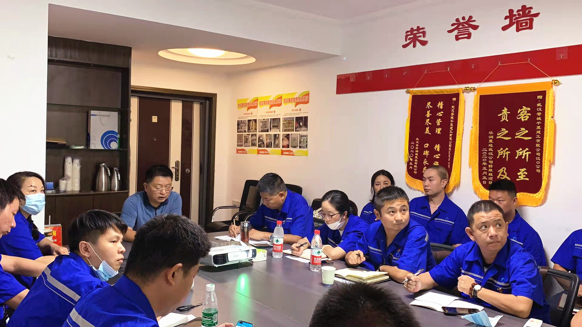 董事长从今年年初的疫情谈起,回顾了誉城千里公司在疫情中响应组织号召,逆行出征,火线支援雷神山、火神山医院建设,承接方舱医院建设任务,组织干部职工下沉社区等一系先进事迹。教育广大基层党员,要清醒的认识自身的定位——我们,是党领导下的国有企业,在生产经营的同时,要听党指挥,不怕牺牲,甘于奉献,服务人民。这是我们企业的职责,更是我们每一名职工,特别是党员、干部的使命。