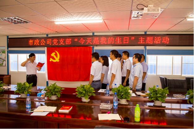 2018年7月6日上午8点半,市政公司党支部于江汉六桥项目部召开2018年7月主题党日,此次主题当日分为三个环节。第一个环节,由公司总经理助理常强同志为市政公司党员同志讲党课。第二个环节,“今天是我的生日”主题活动,为7月份过生日的党员同志过一次“政治生日“。第三个环节,常强同志带领全体市政公司党员同志重温入党誓词。