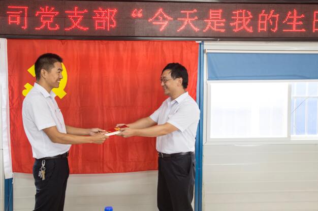 朱成进同志代表7月份生日的党员同志接受了组织赠与的《信仰的颜色》党建书籍,以及武燃工程公司赠与的生日贺卡。这样的活动体现了新时期党员活动的多样性,党组织对党员个人的人文关怀和培养。
