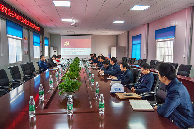 2018年10月25日上午,集团公司党委书记汪志勇、党委副书记龚必安一行5人来到黄家湖项目部,调研指导市政公司党支部工作。工程公司董事长沈斌、党委书记杜勇、副总经理常强同志陪同调研。