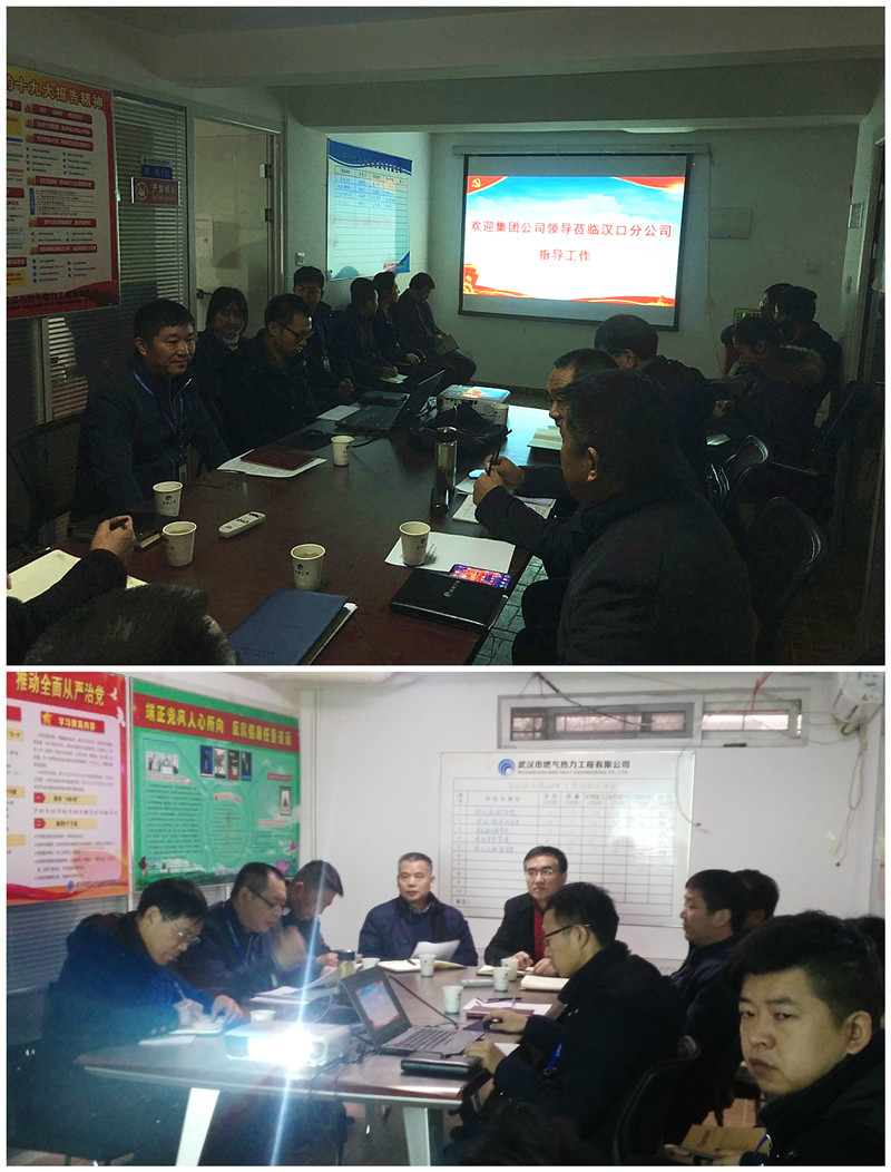2019年1月10日上午,新年伊始,集团公司党委书记、董事长汪志勇同志,集团公司党委副书记纪委书记龚必安同志,集团党委工作部部长彭志刚同志及公司董事长沈斌同志、党委书记杜勇同志一行,来到汉口分公司驻地,参加汉口分公司党支部主题党日活动,并对分公司支部建设及生产经营情况进行调研。