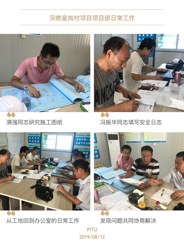 纵使深燃皇岗村项目困难重重,但是在这个刚刚临时组建起来的管理团队里工作人员而言,都是毫无怨言的,大家精心尽责,只想尽自己最大的努力把工程做好,把武燃工程的名号打响。这是一只能打硬仗的队伍,年龄跨度也相对较大,年龄最大的安全员59岁,仍然奋战在一线发挥着自己的余热。我们在为他们骄傲的同时也多了一份感动。