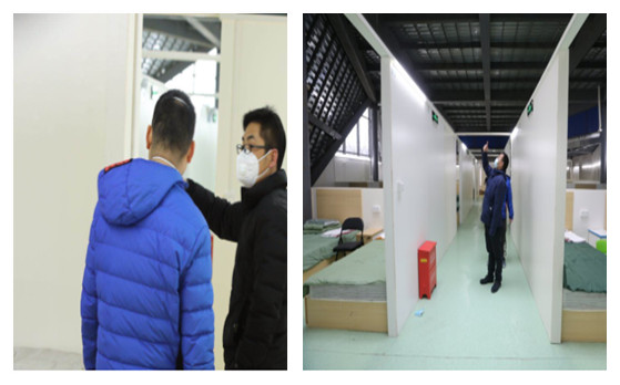 党员带头,放光芒。虽然时间紧、任务重,但工程质量却不能懈怠。大家不管任务多紧急,身体多疲惫,都井然有序做好一道接一道的工序,从每个墙板间隙的检查到每个床铺螺丝钉的组装都一丝不苟。安全无小事,安全标识的装置以及消防器材的放置点严格按规范实施,毫不马虎。忙碌起来经常会顾不上吃饭,水能不喝就不喝,只因上厕所耽误时间。他们争分夺秒,日夜奋战,只因他们希望正在建设的治疗点能够成为承载患者健康与安全的方舟。他们用实际行动表达抗疫决心,坚决打赢疫情防控阻击战。誉城加油,武汉加油!