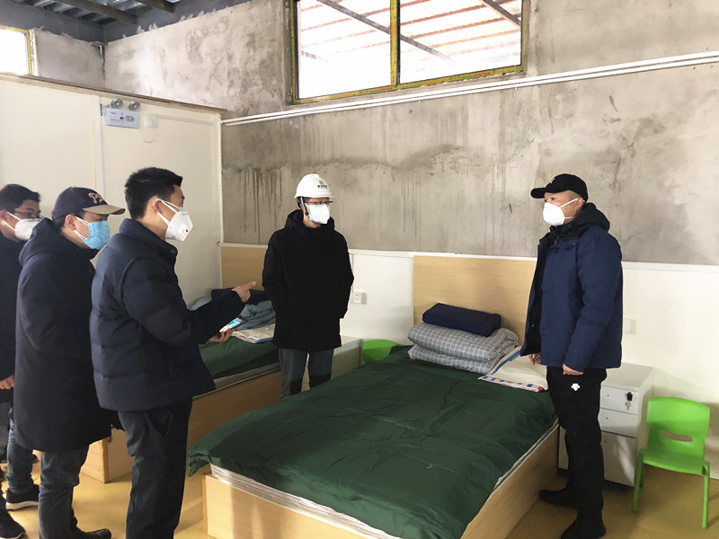 誉城集团领导及公司领导检查调度纺织大学方舱医院