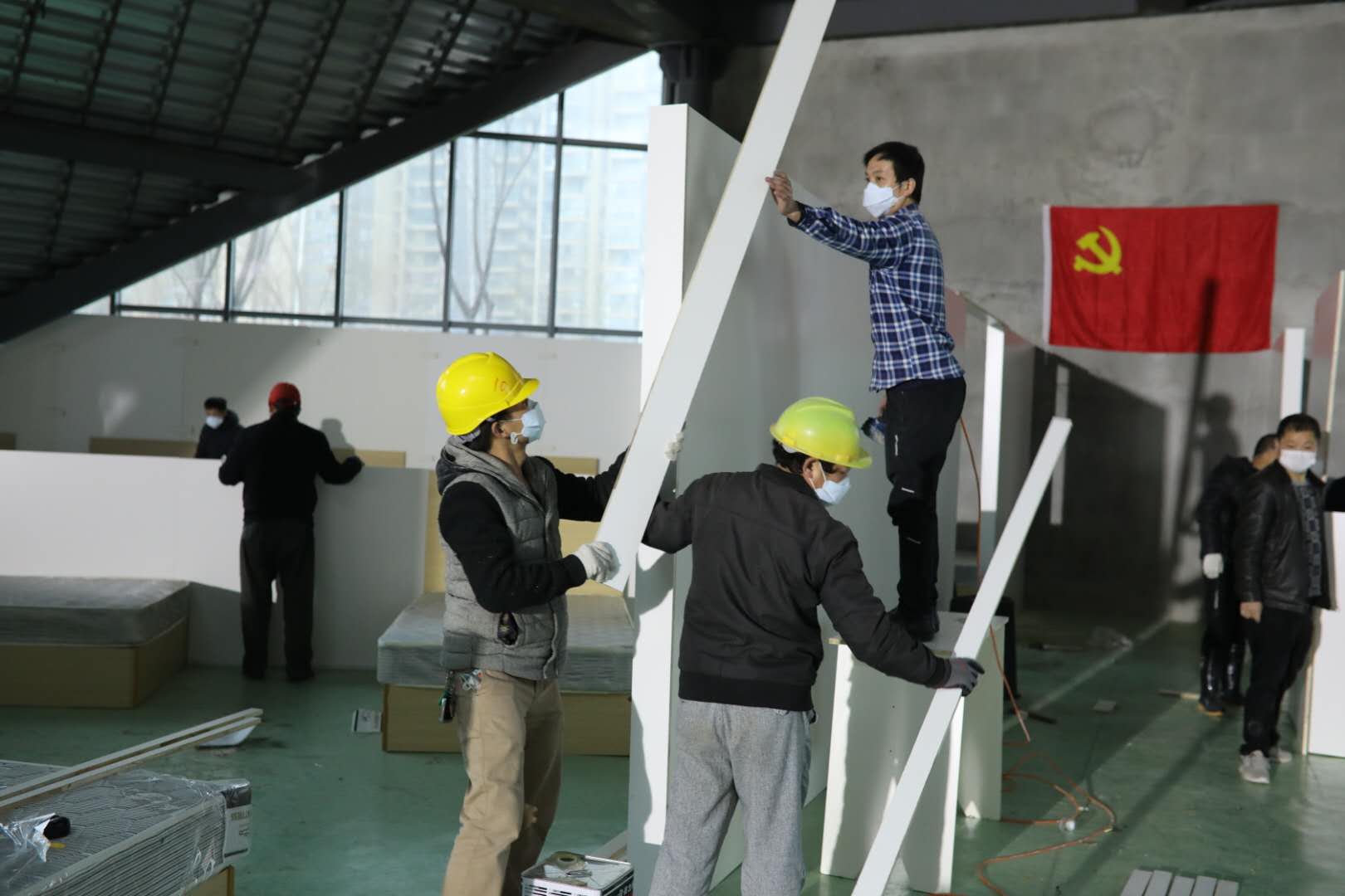 根据武汉市委市政府抗击疫情的部署,东湖风景区管委会决定使用武汉纺织大学梨园校区学生宿舍再建一个拥有600个床位的隔离点和300个床位的治疗点的方舱医院。继顺利建成白马驿站方舱医院,誉城集团再次启程,接受了这个艰巨任务。当前正是疫情迅猛发展的时刻,为了让更多的病患者能够得到及时治疗,誉城人再次展现出惊人的力量。疫情无情,工期紧迫,越是这个时候,越能体现千里公司的凝聚力。公司领导班子高度重视此事,紧急调度材料采购中心,从2月10日下午开始组织物资采购工作。为合理调配人员力量,确保完成抢险任务,在公司主要领导调度指挥下,市政分公司经理于颛、副经理王坤接到任务后迅速将建设白马方舱的市政分公司人员一分为二,即刻带领部分力量转战纺织大学,并从公司工程部、市场经营公司紧急抽调部分员工参加了纺院方舱医院建设。