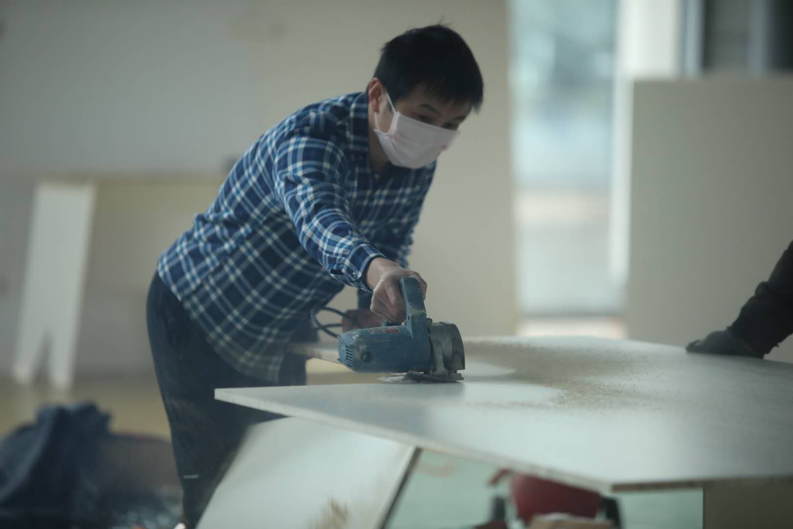 疫情当前,领导们个个身先士卒,以身作则,靠前指挥,将施工标准再次升级。市城投集团公司盛华副总经理(兼誉城集团董事长)统筹部署,誉城集团吴伟文总经理亲自带领班子成员现场驻守、指挥协调。誉城千里公司总经理谢辉亲自带队,率领抢险中心及设备部人员一起赶赴支援,积极参与物资卸运、床具拼装和卧具分发等工作。为了尽快完成任务,工程初期,市政分公司全体人员全通宵加班加点,即使身体和精力都已经极度透支,也没有一个人喊苦,更没有一个人喊累,这其中有从援建火(雷)神山建设工地转场而来的工作人员,有一声令下紧急赶赴施工现场的管理人员,也有主动请缨一干就是通宵的市政分公司团队。千里公司副总常强、副总工王政,扎根现场,带领同志们拼抓狠干,市政分公司的杨驰、杨玥双眼布满血丝,眼袋下垂,他们和同事从参与工程建设后基本没有休息,他们表示作为千里公司的一份子,要尽出自己的绵薄之力。通过大家的齐心协力,最终高效率、高标准完成了方舱医院的建设。