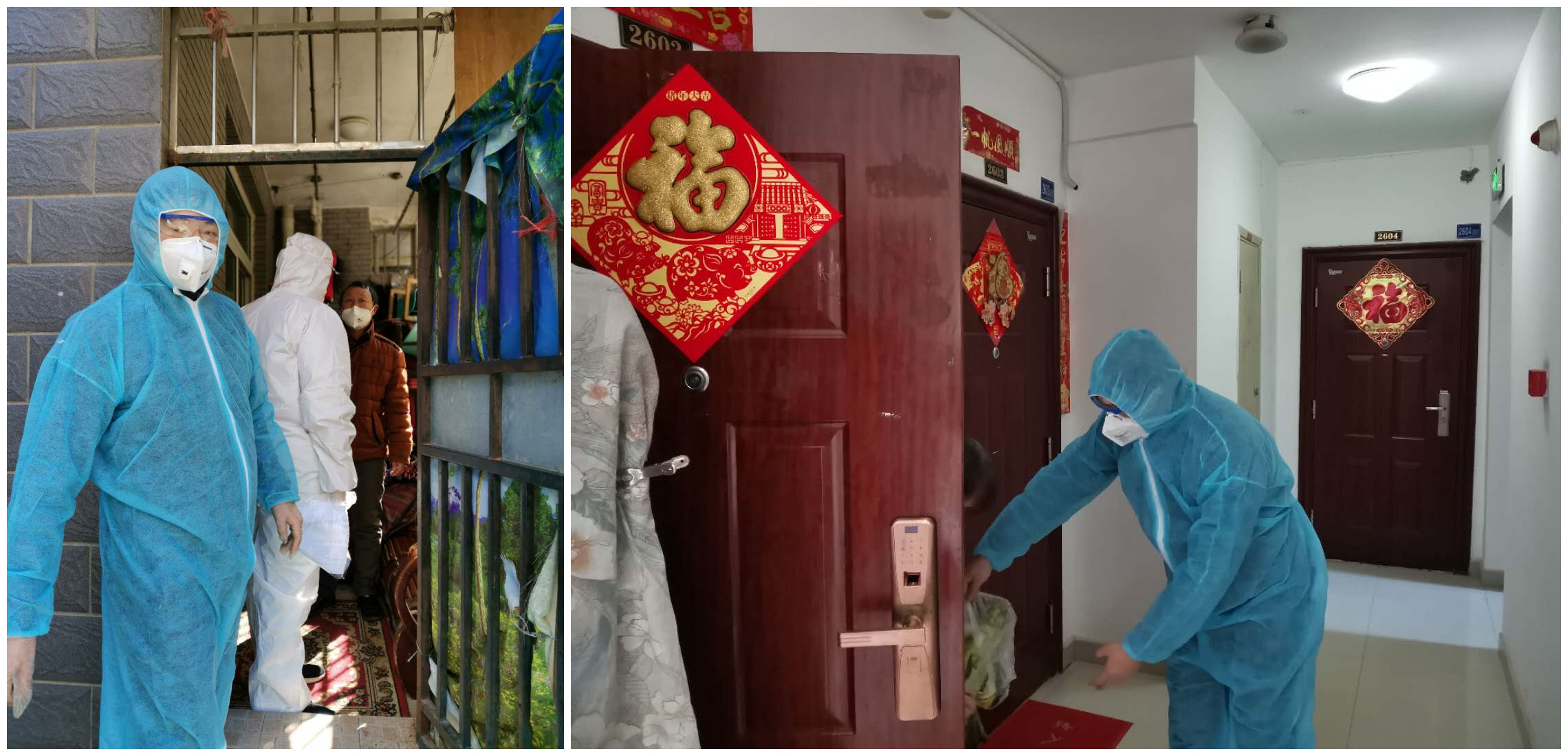 2月17号,涂新建下沉到武昌区紫阳街保安社区开始摸排工作,清查“四类”人员。到19号晚,整整三天,他都在居民楼里上下奔走。他所排查的汇文新都小区是楼梯房,排查时候只能一步步上下楼梯挨家询问。为能多查访几户,在最短时间里完成排查,他穿着密不透风的防护服在楼梯上边走边跑,一天下来全身都像是泡在汗水里,头发都湿透了。年龄不饶人,超负荷的运动量让他的腰疼了起来,严重时候走路都得弯着腰。
