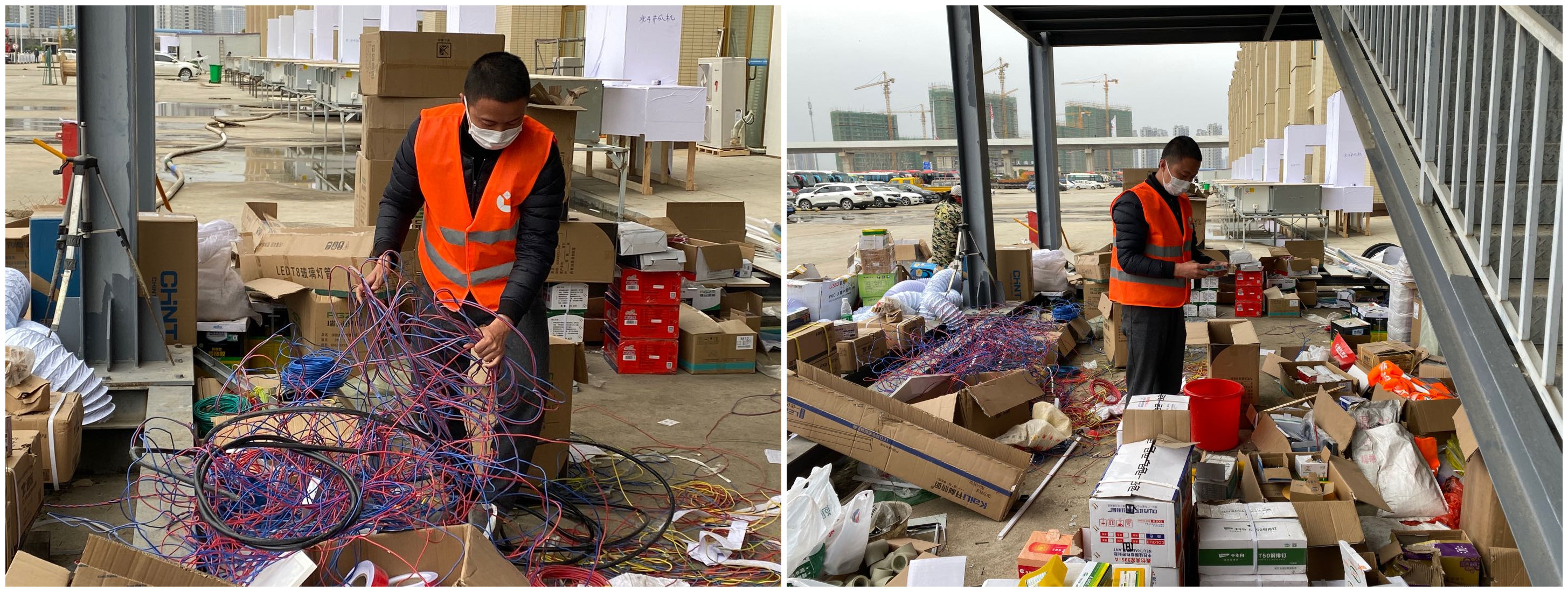 他们风雨无阻,想方设法保障物资。由于工期紧张,且正值武汉疫情高峰时期,所需各类设备材料物资、施工辅材种类繁多,难以购置,但设备材料物资是项目能够按时完工交付的关键所在,必须势在必得。现场设备材料大到病房的床位书桌,小到隔断门的一颗螺丝钉,经现场管理人员和设备部全天候四处联系各类厂家,张攀、张鸿明开车多方寻找货源、联系运货送货车辆,找到了所有材料设备的供应商和辅材五金的购买点,所有困难都一一击破,保证了项目进度飞速进行。