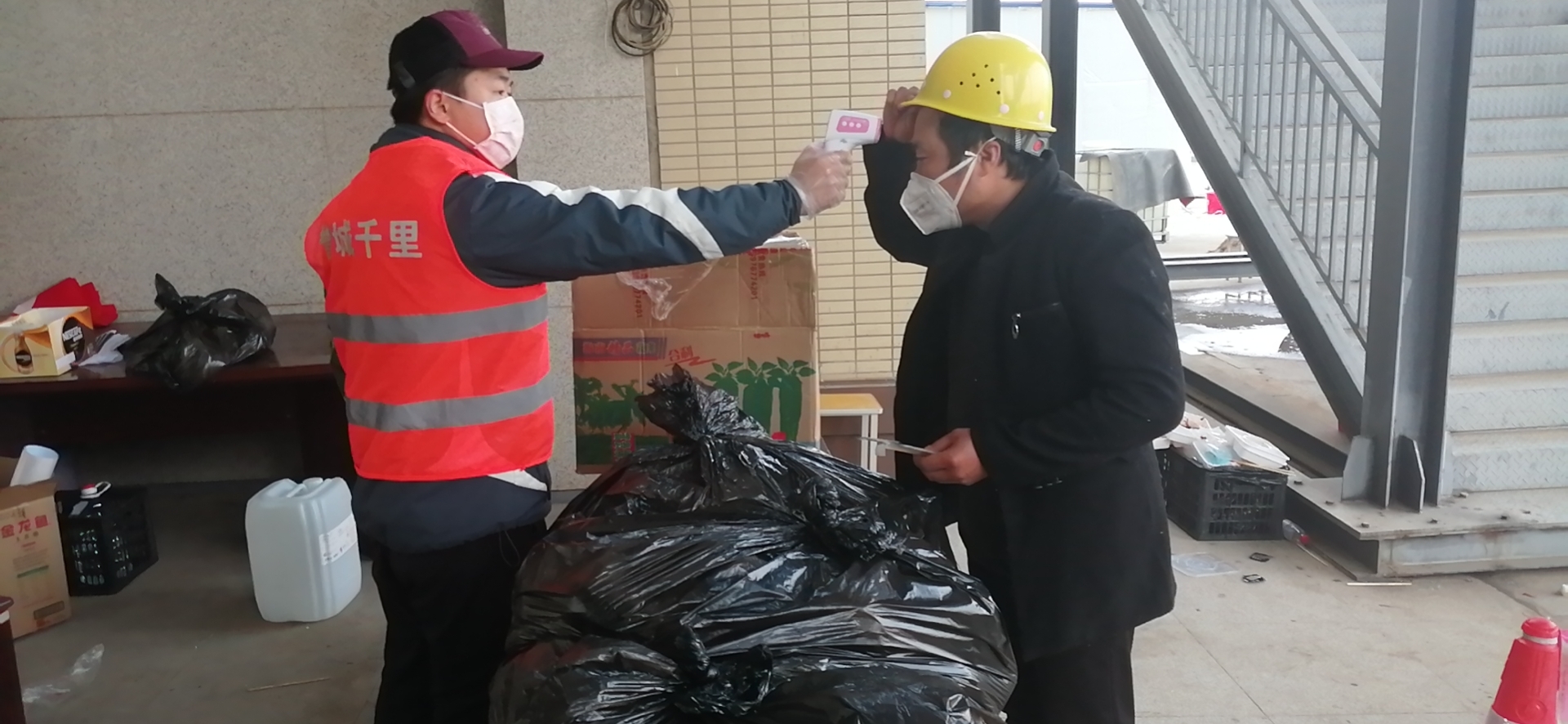 张鸿明定时定点给全体施工人员量体温