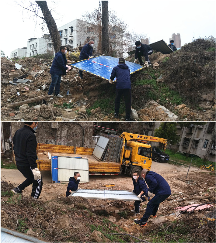 为全力配合疫情防控工作有序进行,有效阻断社区疫情传染源,提高开放式居民小区的封控成效,东西湖项目部紧急受命,对杨园街理工大水运社区进行打围封闭,通过连续四小时的奋战,为居民群众的生命健康筑起一道严密的安全“篱笆”。