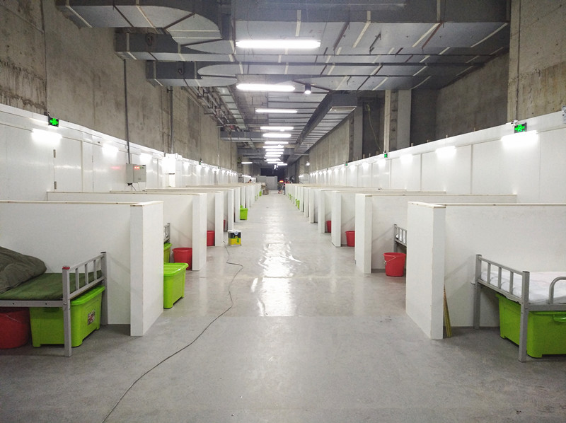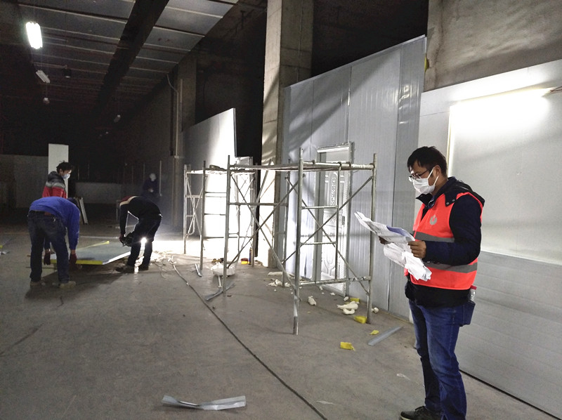 在此次汉口北方舱医院的建设工作中,高压项目部负责约1400㎡的场地铺设,141张床位、25座临时厕所等结构的安装及配套附属设施建设。王兵同志担任现场施工技术员,在来到施工现场后,立即开始熟悉施工图纸,研究施工方案,带领工人进行地胶、电力、照明、隔断等安装工作。为配合工人快速施工,在各区之间来回协调,对施工图纸上的每一个细节都仔细钻研,与设计沟通,对工人交底,遇到有问题的地方与相关人员积极讨论,快速解决,连续几天凌晨两三点还在现场指导施工。在保证施工进度的同时也确保了工程质量,在细节处理的过程中也处处透漏着精益求精。