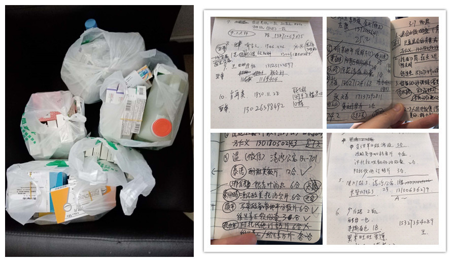 每一种药品成分、商品名、生产厂家、剂量,咀嚼片还是缓释片、胶囊还是滴剂,这些信息都须与居民仔细沟通,在药店里反复确认核对才能购买。居民们更是放心的将医保卡交给她,请她代买药品。朱晖从药房提着大袋小袋的药品返回社区,再仔细对应收据清点分装,确保每一份都准确无误。3月19日,有个住户要买一个专用药,朱晖花一上午跑了十几家药店都没找到符合规格的,最后好不容易在一家药店找到一摸一样的,却因不能刷医保卡,委托者拒绝现金购买只能作罢。好性子的朱晖也不甚在意,“我多跑跑没关系的,病人早一分钟拿到药,可能就能早一分钟缓解不适。”