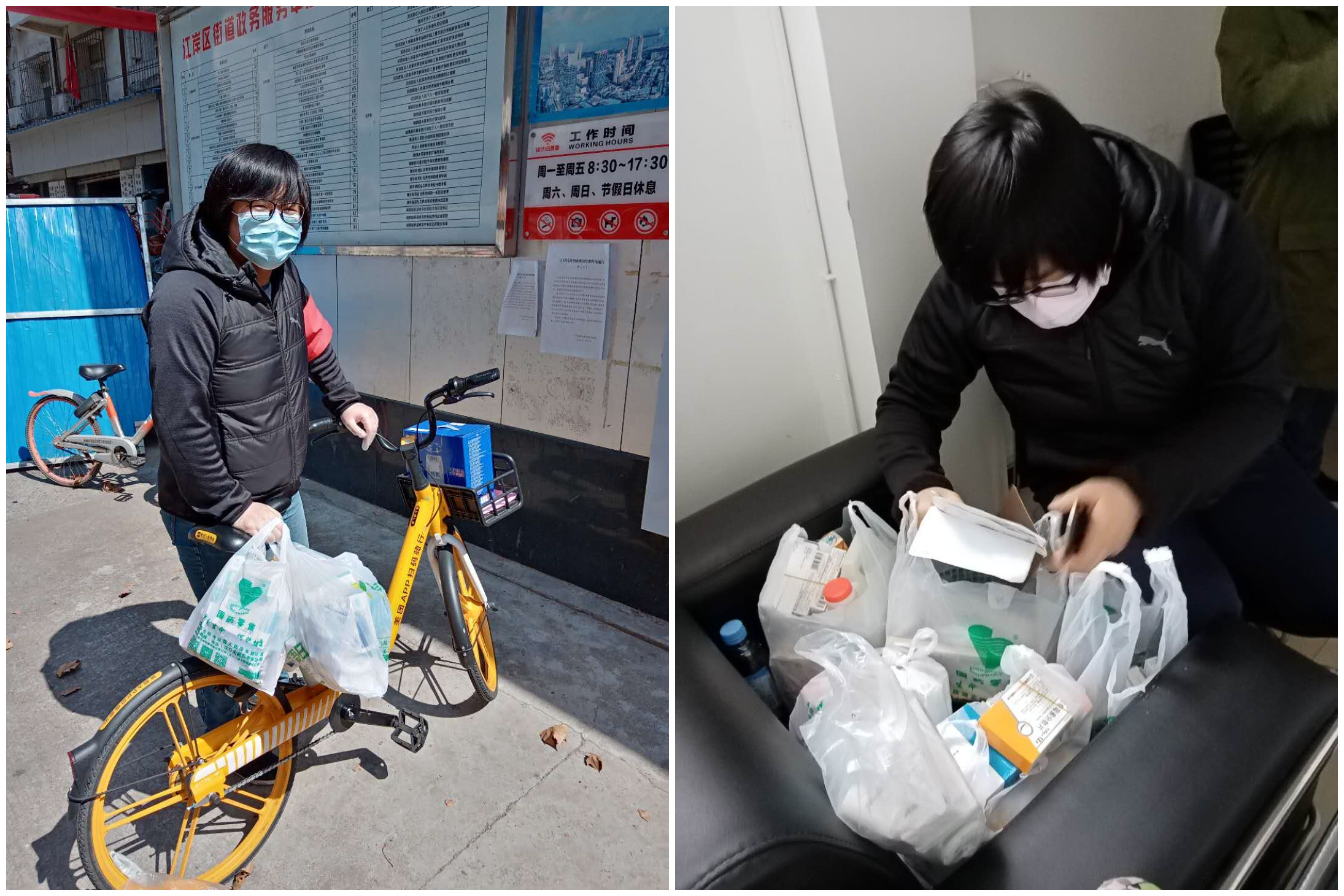 由于小区实行封闭式管理,居民不能进出,她负责的500多户居民近2000人,大部分都是年龄大、行动不便、不会使用手机的老人,有不少身患各种老年病、慢性病,为了解决居民们买药的实际困难,她又多了一个身份:“药品采购配送员"。每天朱晖所在的社区工作群里的都会有不少居民发来购买药品的诉求,她充分发挥了女同志细心、耐心的特点,一次次、一遍遍,不厌其烦,逐一给居民们回复、登记。为了让居民能及时拿到药,朱晖常常骑着共享单车一天多次往返药店与小区。非常时期,买药不容易,有时候药店门口排队等号就是1个多小时;一些慢性病的专用药往往要跑好几家药房才能配齐;降压药,降血脂这类药品更是紧张,跑遍方圆2公里的药店才买到。