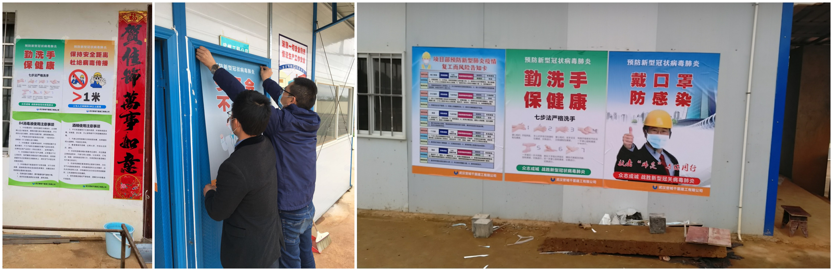 收到批复后,高压项目部加快进度,3月26日上午就将安全工程管理部与设备经营部采购的第一批防疫物资运送到现场,并对施工现场、办公地点、管理人员居住地进行了第一次消杀工作。3月27日对施工人员居住点的居住条件、生活条件进行检查,将防疫物资下发到施工班组,安排布置了复工后分包方首先要做的施工工作。3月28日对安装和土建施工班组进行防疫方案的专项交底,在施工现场、办公室、施工人员住所地张贴防疫宣传标语标牌,并报请公司安全工程管理部到现场进行复工防疫准备工作的检查,不断对复工前准备工作进行完善。3月29日早上,公司副总经理何高峰到现场检查复工准备工作,听取了施工计划安排并作出复工指示。29日上午10点,江夏区安山街道来到安山扩建项目现场检查工作,认可了我们的复工防疫准备,并下发了准许复工通知书,意味着安山扩建项目可以恢复施工了!下一步,将报请公司安全工程管理部对现场的防疫准备和安全生产工作进行细致检查后,正式复工。
