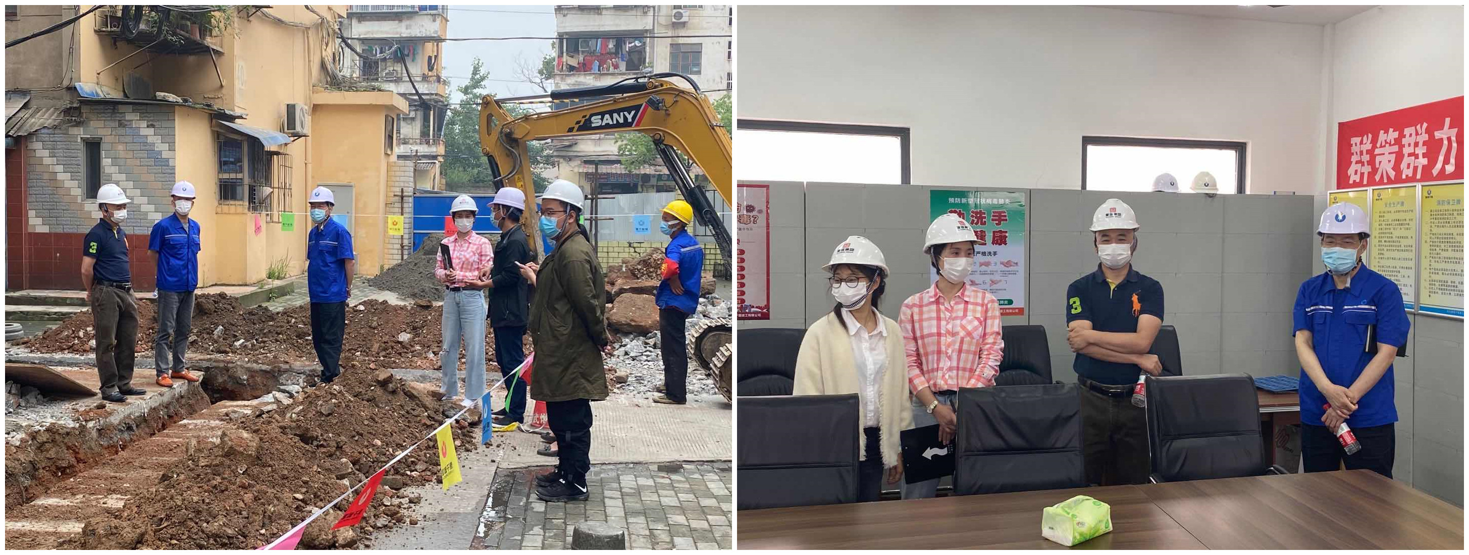 城投集团领导、誉城集团领导及誉城千里建工领导都非常重视此工程复工后的进展和现场文明施工以及防疫防控的工作落实情况,多次到现场进行检查和指导。2020年5月9日复工之日,青山区城管执法大队队长钱凯、老旧小区改造办公室书记顾卫国、重点办负责人蔡延达及长江现代水务公司相关负责人在誉城千里公司董事长沈斌、副总经理何高峰的陪同下检查了“三供一业”供水改造项目施工现场,对我公司在这项工作的推进、落实该项目复工复产和防疫工作以及安抚民心等各项工作表示了肯定和赞赏。