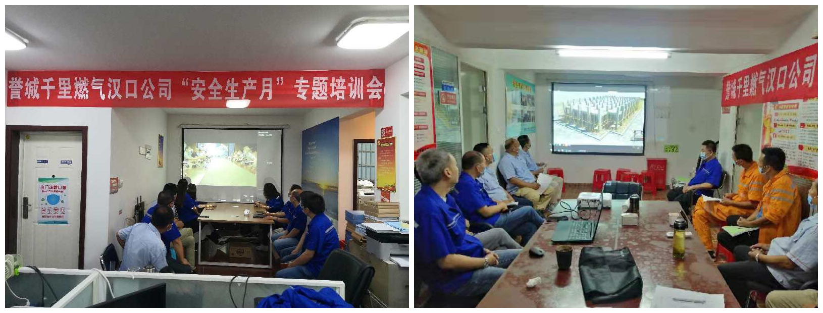 早上活动开始前燃气汉口公司书记黄盛明、经理助理吴翔介绍了今年安全月活动主题与内容。随后燃气汉口公司全体职工和下属分包方负责人参加誉城集团组织的“安全月专题培训”活动。