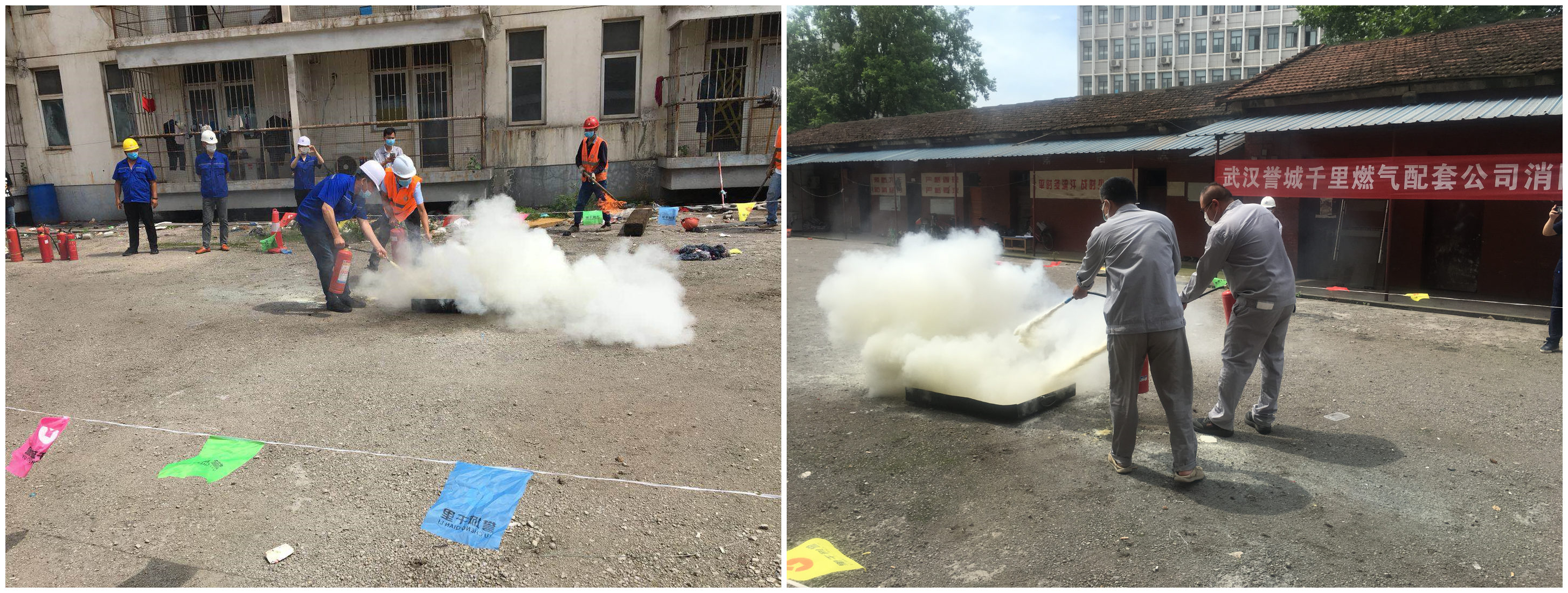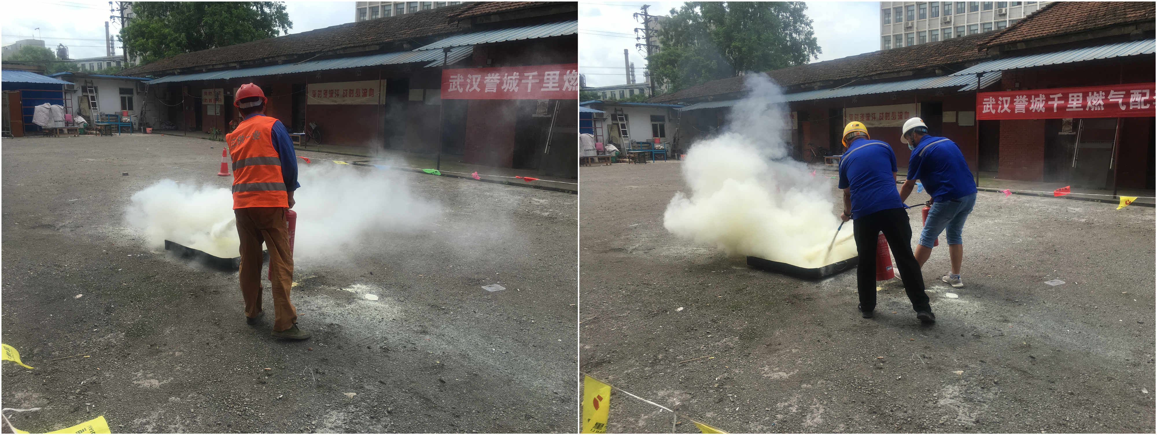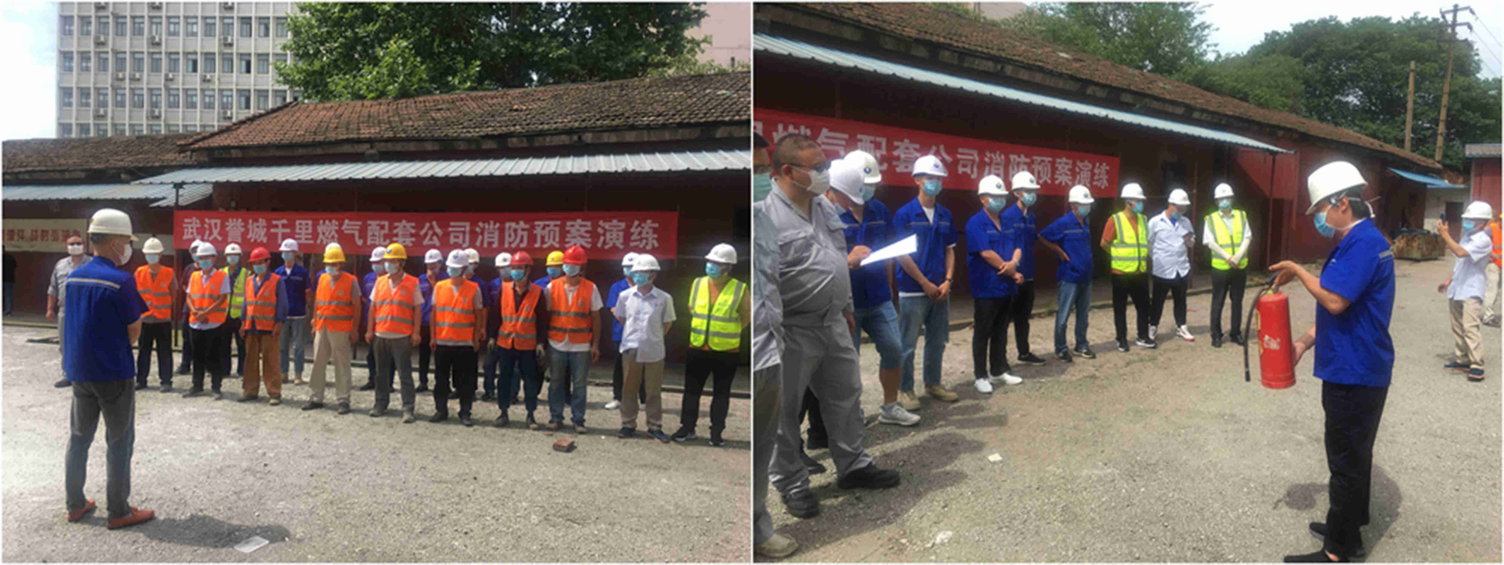 为贯彻落实今年全国第十九个“安全生产月”以“ 消除事故隐患,筑牢安全防线”为主题的活动宗旨,遵照《安全生产法》和《建设工程安全管理条例》,坚持“安全第一,预防为主”的原则,加强实操演练,掌握过硬应急处理能力,形成自我防范意识,群防群治,全面保障的工作机制,以从根本上消除事故隐患,有效遏制重特大事故的发生。燃气配套公司按照《公司关于开展2020年“安全生产月”活动的通知》的精神和要求,于6月16日上午,组织全体员工及分包方负责人,并邀请总包单位武汉市政工程设计院有限责任公司,监理单位武汉安宇工程建设管理有限公司,业主单位青山船厂置业公司三方主体相关人员,在青山船厂“三供一业”工程施工现场,举办了“燃气配套公司2020年消防演练”活动。公司安全工程管理部部长韩捷,副部长朱立新到达现场观摩并作了指导。