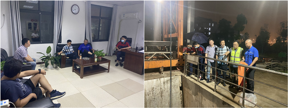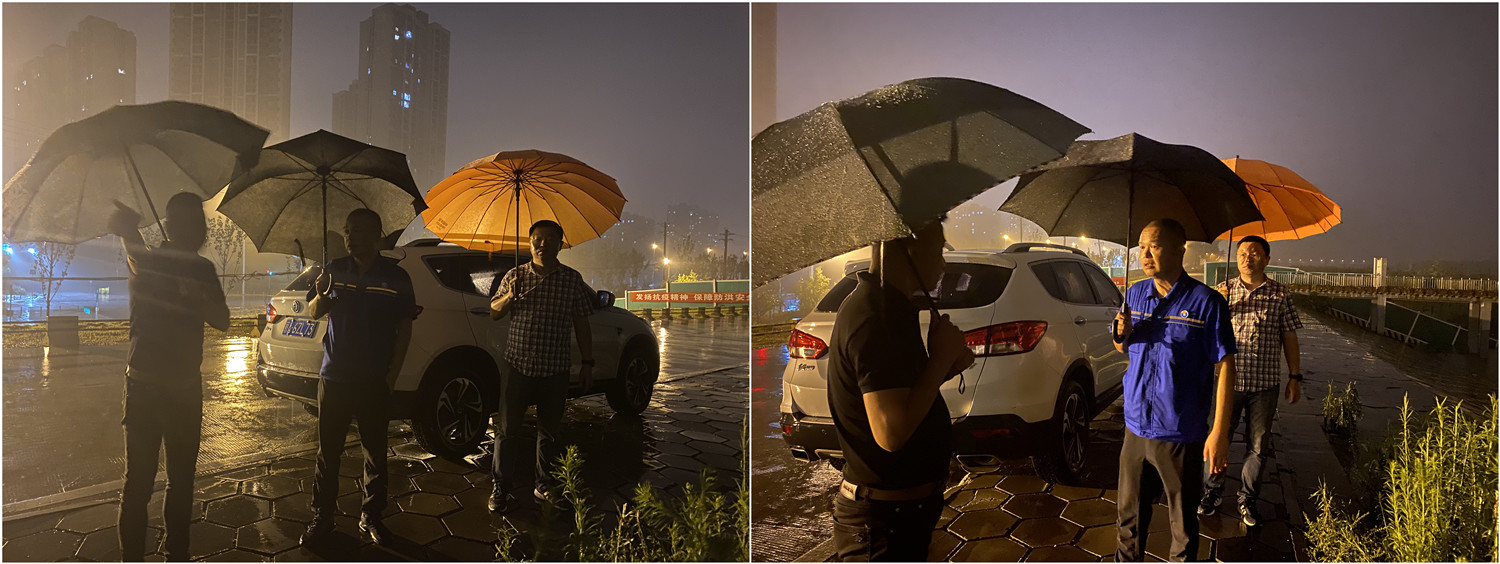 22:30,总经理谢辉、安全总监韩捷冒暴雨在江南泵站防汛值守点现场进行视察,并对值守人员进行慰问。