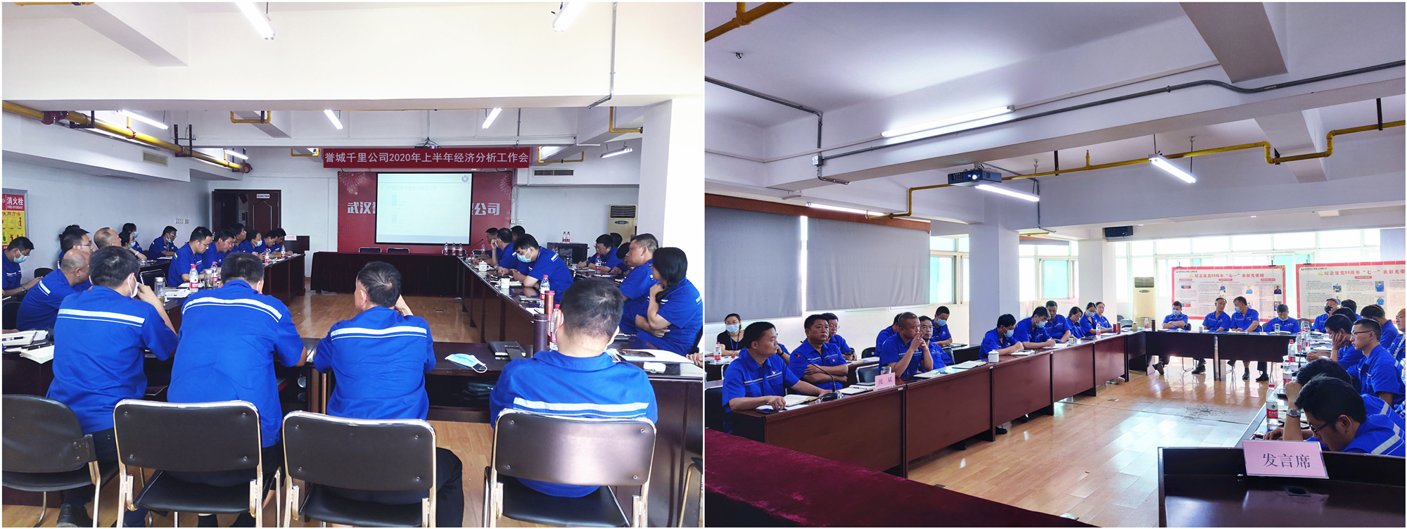 7月23日下午,武汉誉城千里建工有限公司组织召开2020年上半年经济分析工作会,公司领导班子、职能部门负责人和实体单位管理人员等43人参加了会议,会议由公司副总经理何高峰主持。