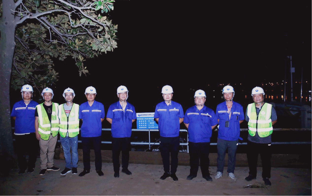 2020年8月3日晚11时。公司总经理谢辉、副总经理常强,市政总监于颛在围堰施工现场,检查督导两湖隧道工程(东湖段)首开段施工工程一期围堰施工。随着最后一车土方填筑,一期围堰正式实现合龙,为完成两湖隧道工程(东湖段)首开段施工围堰工程目标奠定了坚实的基础!