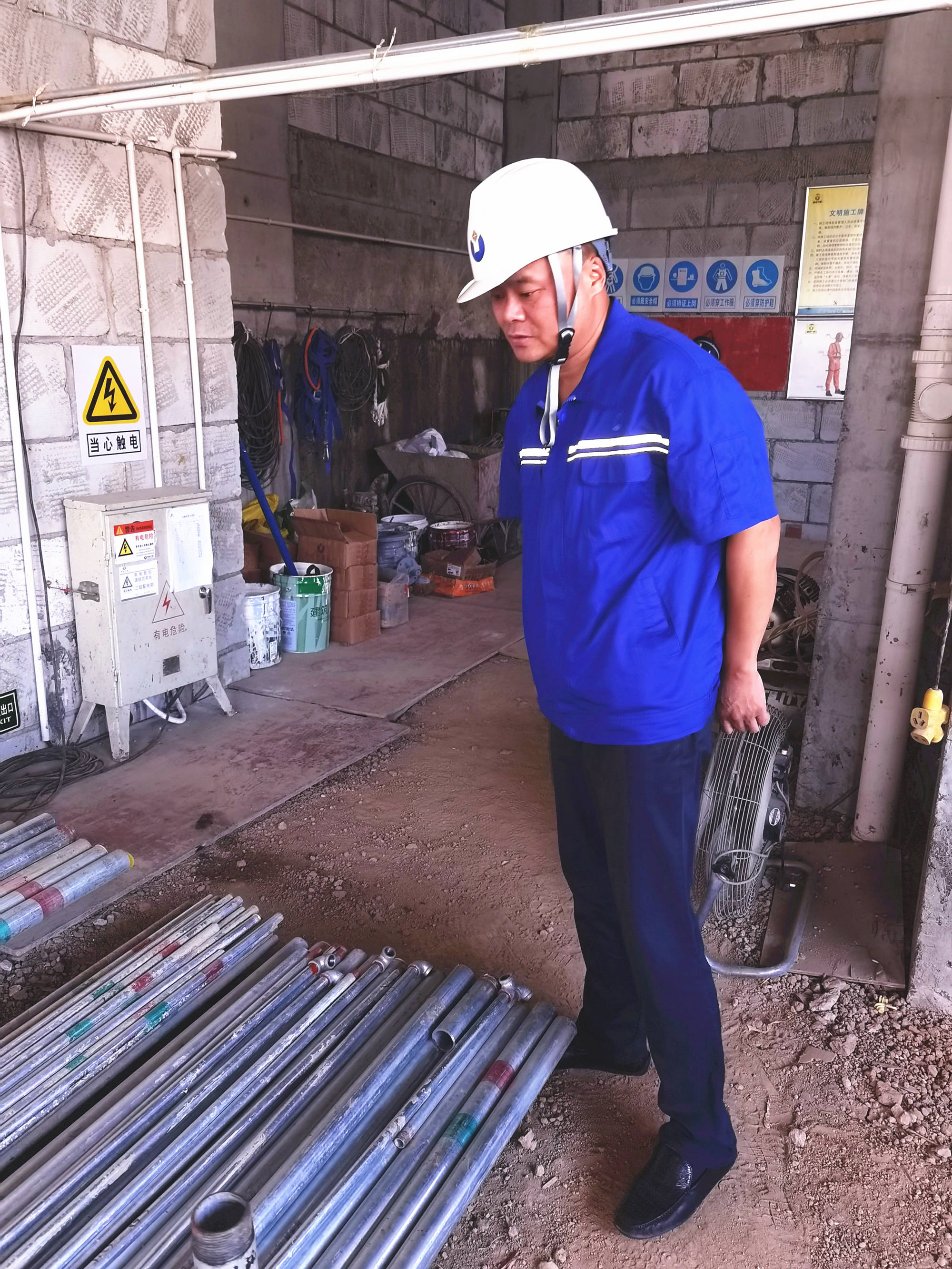 在金银湖联通路中压现场,何总强调新开项目需按照《武汉市建设工地文明施工标准化图册(2020)版》相关要求,按照标准设置建筑工地围挡、现场裸土要有覆盖、现场材料堆放要有序等。并对金银湖联通路中压现场设置围挡及裸土覆盖表示了肯定。