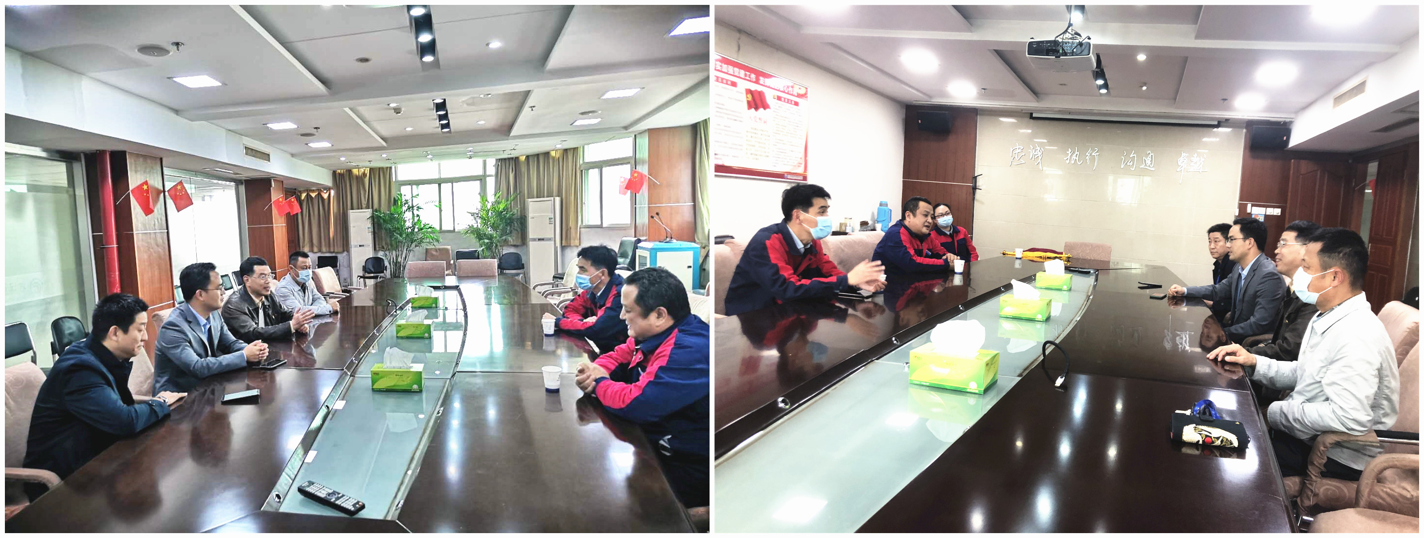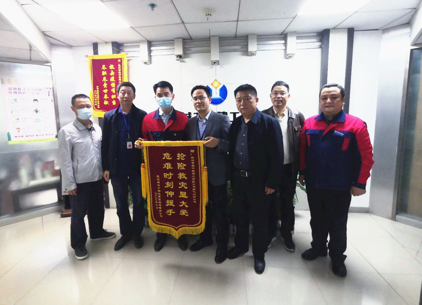 10月30日下午,武汉城投城运公司江南泵站朱站长、何站长来到誉城千里燃气汉阳公司对防汛期间的帮助表示感谢并赠送锦旗,我公司董事长沈斌、党委书记杜勇、燃气汉阳公司陪同。