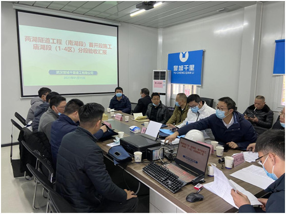 通过对施工现场的充分了解,并对现场情况一致认可后,各单位领导来到会议室对内业资料进行进一步的检查。通过对包括工序资料、测量资料、试验资料等分部分项资料的检查,对资料中存在的问题提出了部分整改意见,需要加以补充和完善。基于整体验收情况良好,各单位同意两湖隧道工程(南湖段)首开段施工庙湖段(1-4区)分段验收圆满完成。