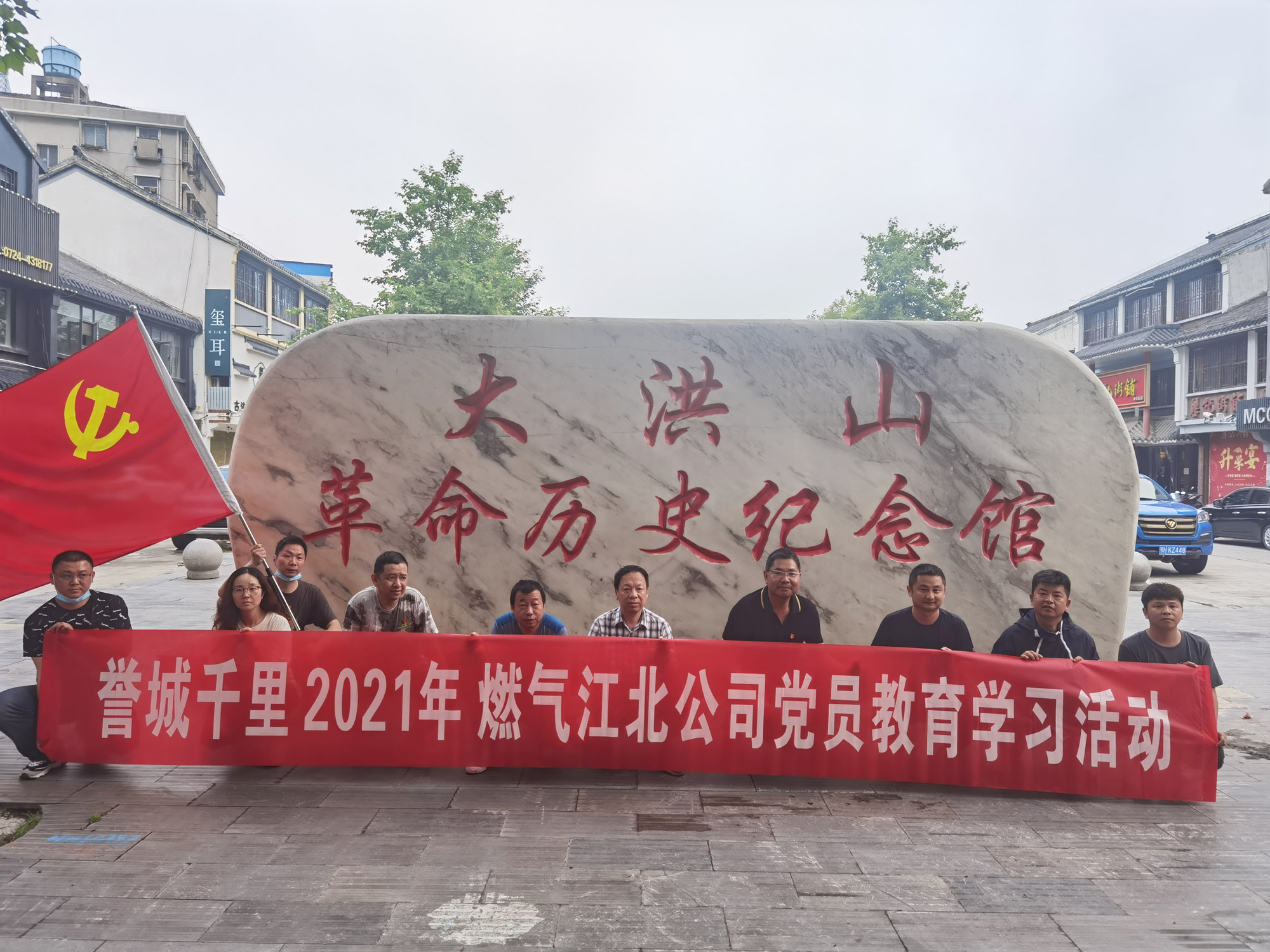 为迎接建党100周年,按照公司党委的总体部署,依据燃气江北公司党支部年度工作计划,燃气江北公司党支部组织全体党员,赴钟祥大洪山革命历史纪念馆,参观学习革命历史,缅怀革命先辈的丰功伟绩,感悟新四军及钟祥人民在中国共产党领导下的抗战历程。